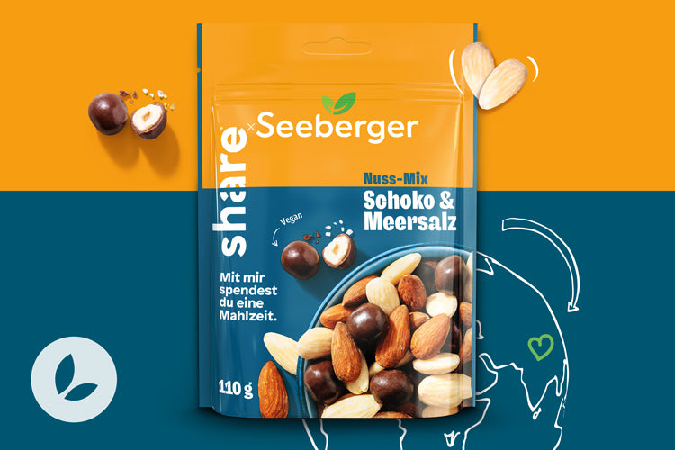 Un plaisir qui fait du bien ! Avec notre nouveau Seeberger x share Nuss-Mix Schoko & ; Meersalz, tu ne t'offres pas seulement un snack super délicieux, mais tu soutiens en même temps un projet social qui aide les personnes qui en ont vraiment besoin.